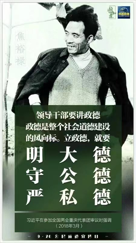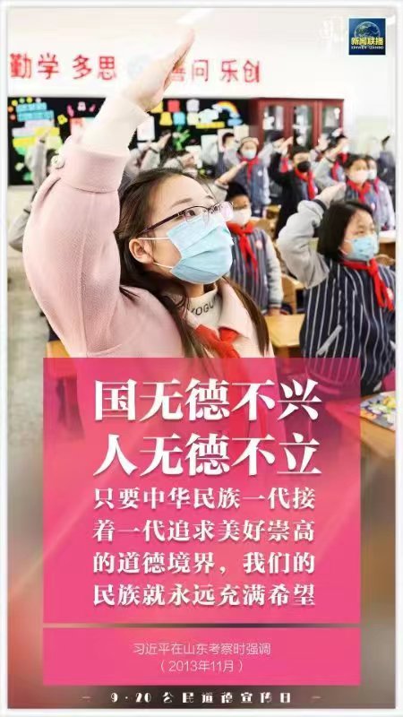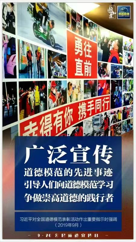 2022年9月20日是第20個公民道德宣傳日。今天讓我們再次學習中共中央、國務院2019年印發的《新時代公民道德建設實施綱要》,踐行社會公德,爭做社會的好公民;恪守職業道德,爭做單位的好員工;弘揚家庭美德,爭做家庭的好成員;注重個人品德,養成優良品行作風,結合學習習近平總書記給中國好人李培生、胡曉春重要回信精神,不斷激發向上向善力量,在平凡工作中創造不平凡的業績。