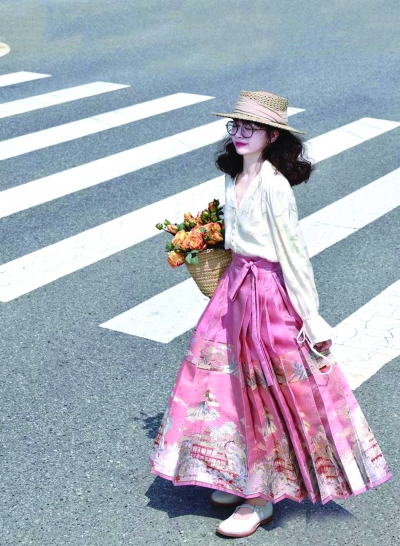 今年以來,無論是在杭州的西子湖畔,還是在北京故宮、天壇,抑或開封的清明上河園、西安的大唐芙蓉園,隨處可見馬面裙的身影。許多人穿上馬面裙,沉浸式游覽名勝古跡,同時還不忘拍照分享到社交媒體上展現漢服之美